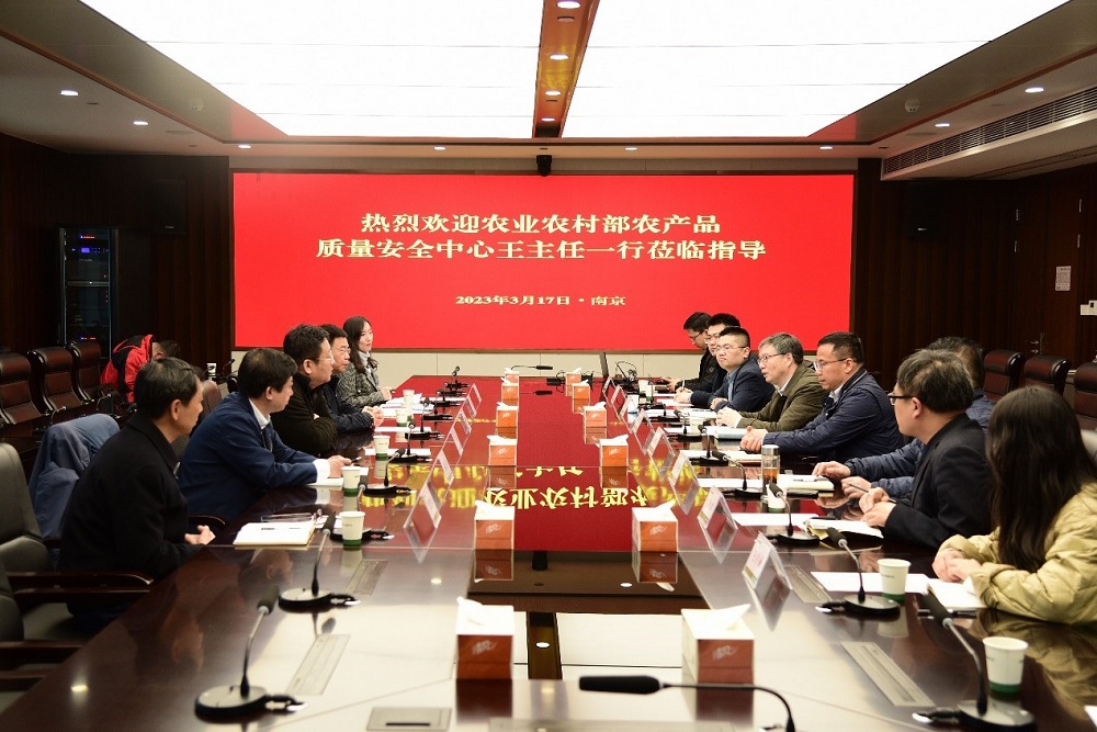 2023年3月17日,農(nóng)業(yè)農(nóng)村部農(nóng)產(chǎn)品質(zhì)量安全中心副主任王子強一行到江蘇省農(nóng)墾農(nóng)業(yè)發(fā)展股份有限公司開展全面質(zhì)量管理、全國名特優(yōu)新農(nóng)產(chǎn)品調(diào)研工作。江蘇省農(nóng)科院副院長劉賢金,蘇墾農(nóng)發(fā)總裁朱亞東等相關(guān)人員陪同調(diào)研。