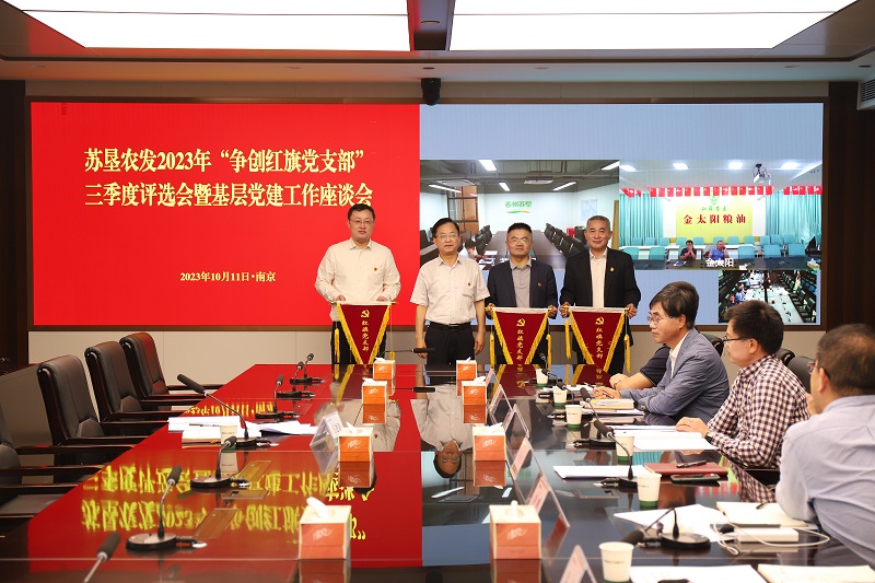 蘇墾農(nóng)發(fā)黨建工作領(lǐng)導(dǎo)小組成員、“紅旗黨支部”評選工作領(lǐng)導(dǎo)小組成員、各駐寧黨支部書記、金太陽糧油和蘇州蘇墾黨支部副書記參加會議。