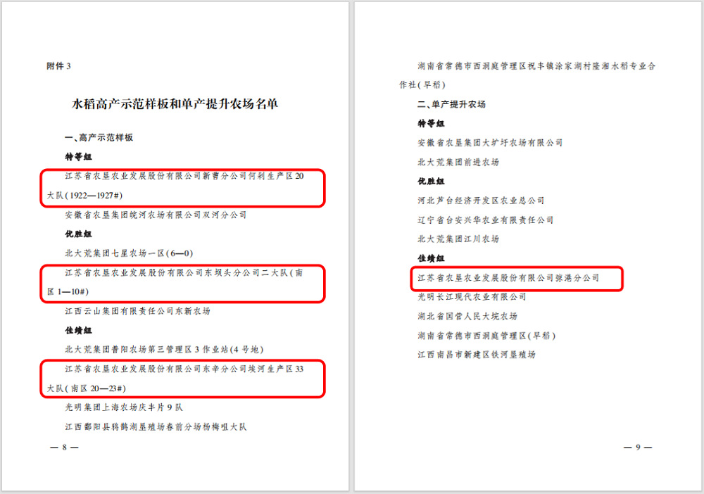 近日,農(nóng)業(yè)農(nóng)村部農(nóng)墾局聯(lián)合中國(guó)農(nóng)林水利氣象工會(huì)公布了2023年全國(guó)農(nóng)墾提單產(chǎn)“大比武”勞動(dòng)競(jìng)賽結(jié)果,經(jīng)測(cè)產(chǎn)驗(yàn)收、綜合評(píng)審,共評(píng)選出48個(gè)高產(chǎn)示范樣板和47個(gè)單產(chǎn)提升農(nóng)場(chǎng)。蘇墾農(nóng)發(fā)6個(gè)示范田入選高產(chǎn)示范樣板、3家分公司入選單產(chǎn)提升農(nóng)場(chǎng)。